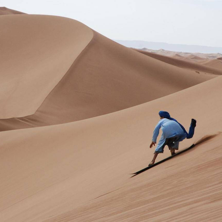 Once in your desert camp at one of the dunes, you will enjoy sliding down the desert sand dunes on your board.